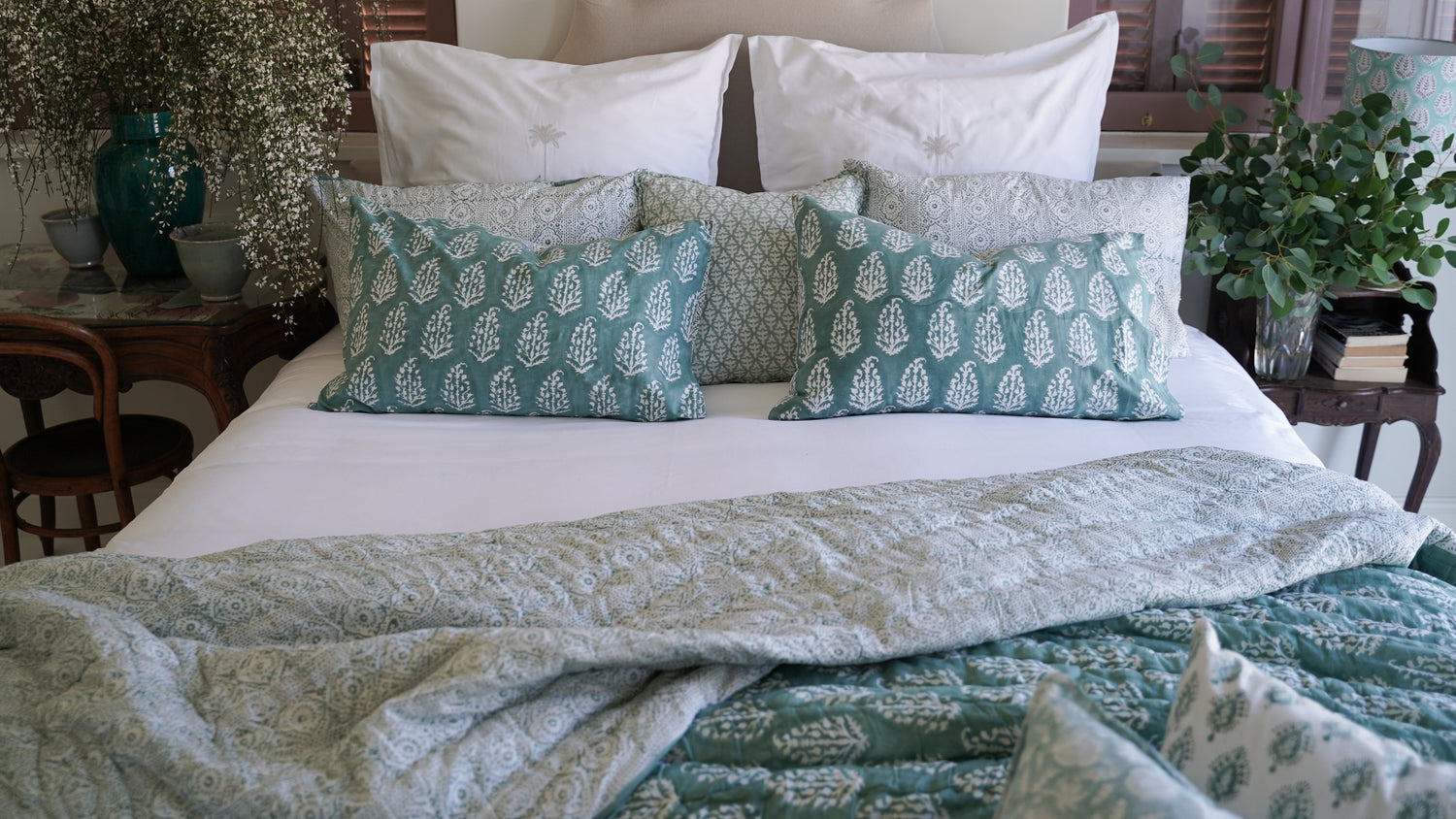 Think hand-stitched, hand-blocked and hand-embroidered. Think muted and dazzling, monotone and full-colour. Think a collection of exquisite homeware that brings it all together, one at a time or all at once.