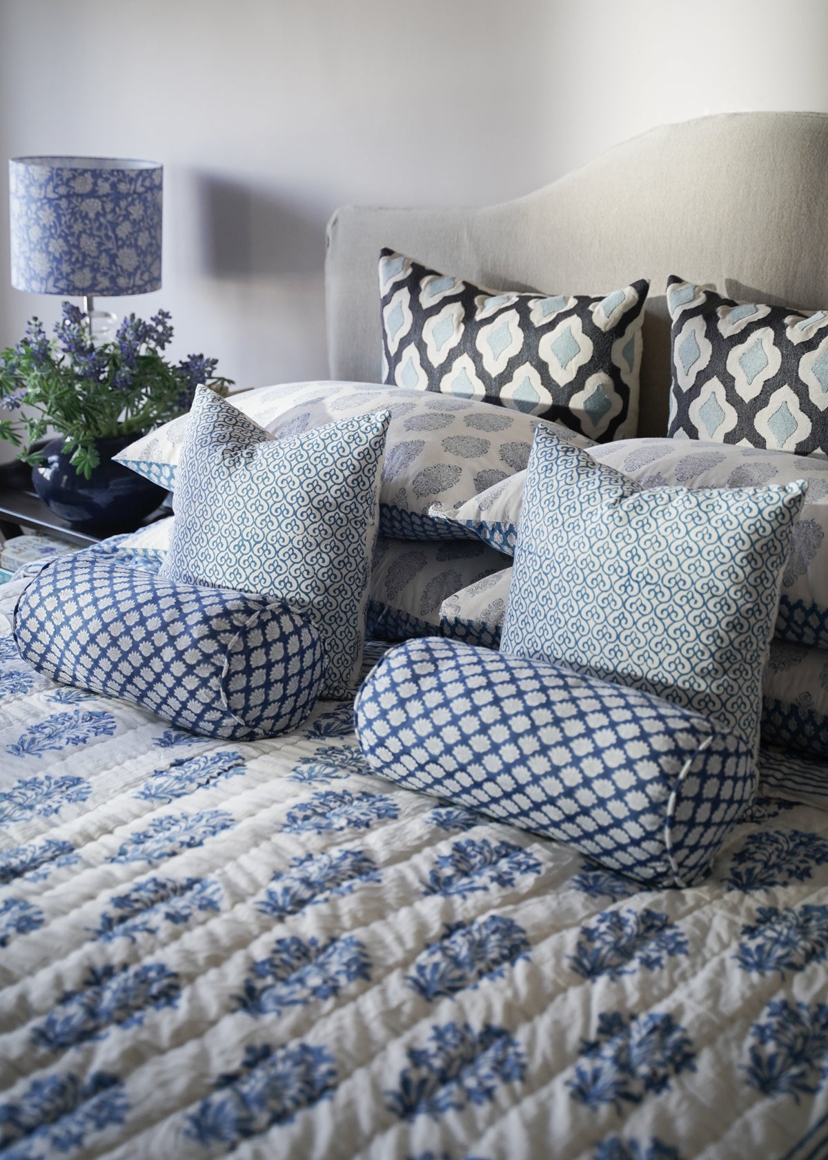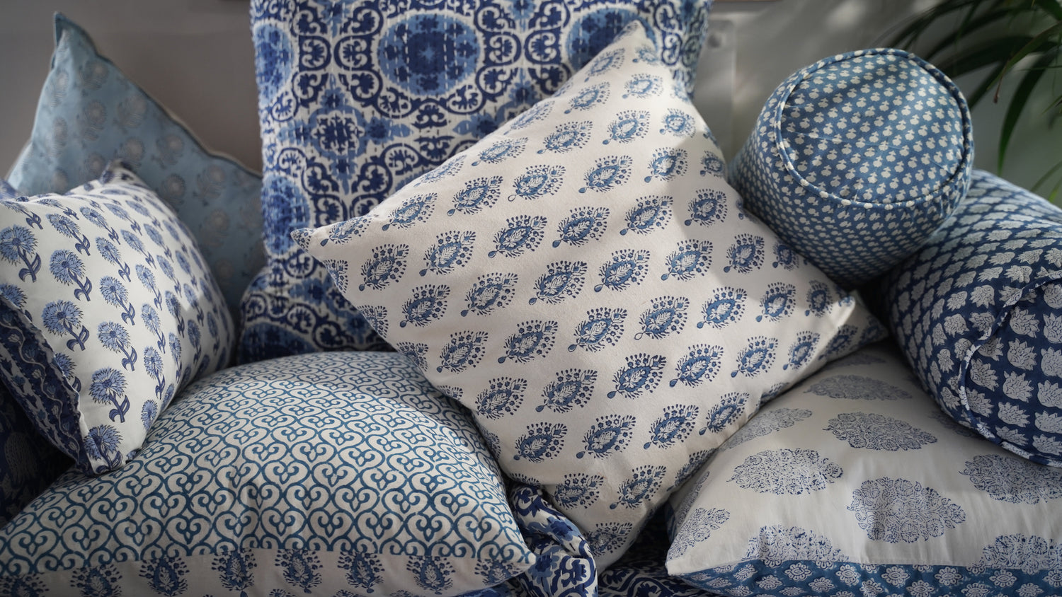 Think hand-stitched, hand-blocked and hand-embroidered. Think muted and dazzling, monotone and full-colour. Think a collection of exquisite homeware that brings it all together, one at a time or all at once.